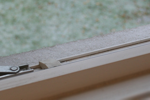 窓を開けると桟にはお砂糖みたいな雪が。