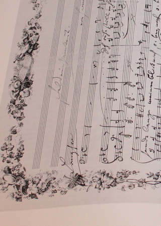 しっかりした構築に美しいメロディーを形作るのが特徴のブラームスは、全体のバランスが見事なハンドライティングを、かわいい五線譜に。