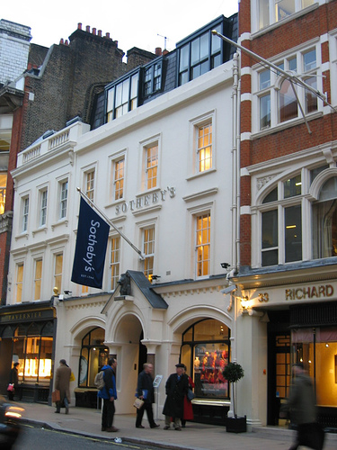 1774年設立、現在も操業する世界最古の国際競売会社サザビーズ。インターネット上でオークションを開催した世界初の美術品オークションハウスでもある。(wikiより)