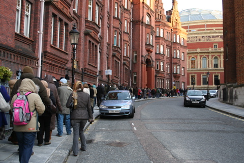 まだ開館1時間以上前なのに、既にRCAのビルディングの裏側の通りから、図のようにキュー(列)がぞろり。