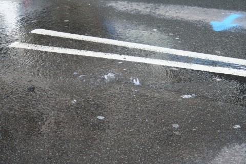 よく見ると、道路の割れ目から水がポコポコ。