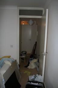 かわりにデスク、ミシン、パソコンなどをベッドルームに置くために、ベッドの両脇についているサイドボードをはずし、それまで部屋をほとんど無駄に占めていたベッドを壁に押し付ける作業など、夫が大奮闘。