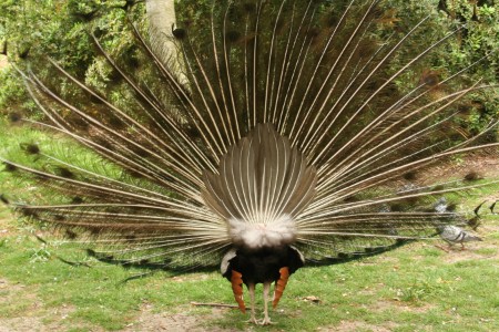 立派な羽を手馴れた様子で披露してくれる孔雀。