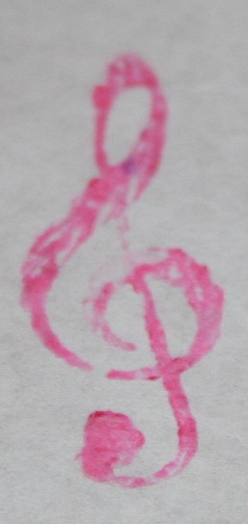 写真は今日買った「ト音記号」のスタンプです。(インクを持っていないことに帰りの電車で気づき、これはしょうがないのでペンで色を塗って押した失敗作。)