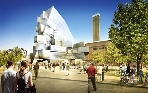 新しいギャラリーはガラス箱を積み上げられたような形になっており、このジッグラト、総工費£M215(約450億円)で高さは70m。2012年のオリンピックに合わせて完成するようです。